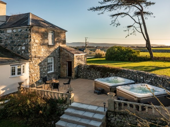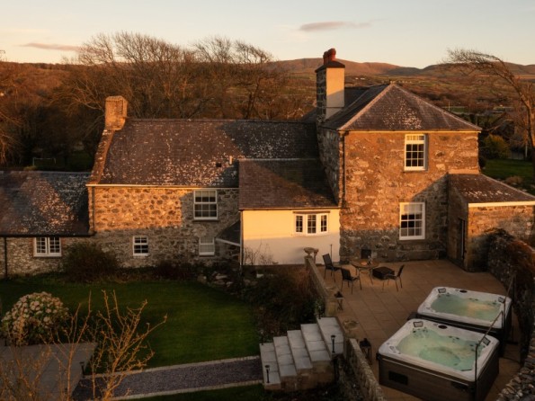 An impressive, detached house sitting on the outskirts of Dyffryn Ardudwy, North Wales. Two hot tubs. Sauna. Near the beach. Barmouth 5.8 miles; Harlech 7.1 miles; Portmeirion 15.5 miles.
