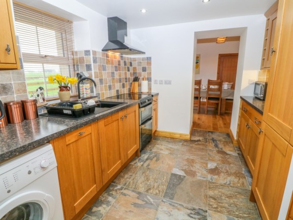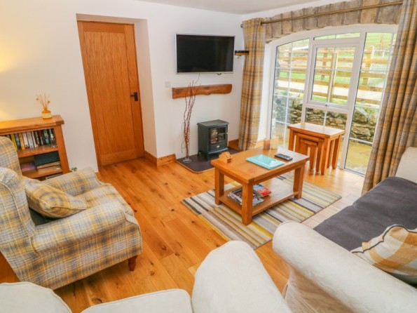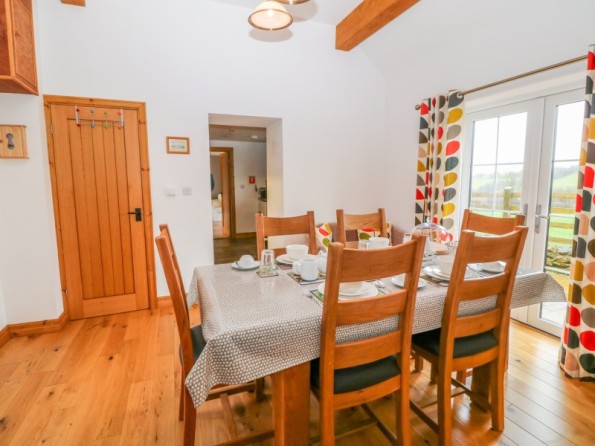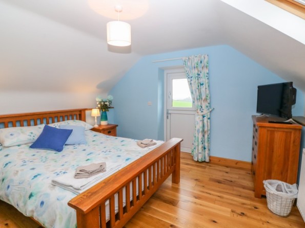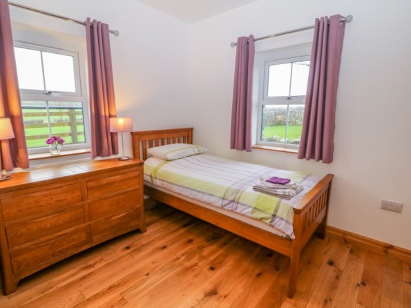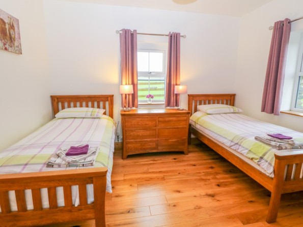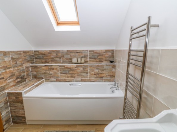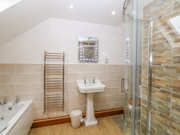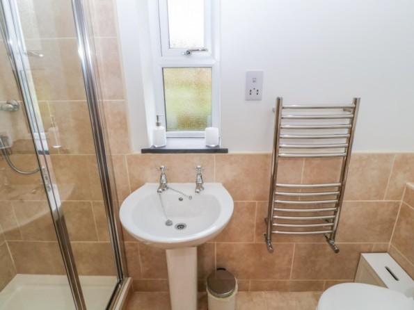 Over two floors. Two bedrooms; 1 x kingsize bedroom, 1 x ground-floor twin bedroom with en-suite, with walk-in shower, basin and WC. Bathroom with bath, walk-in shower, basin and WC. Kitchen. Dining room. Sitting room.