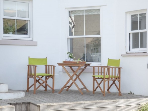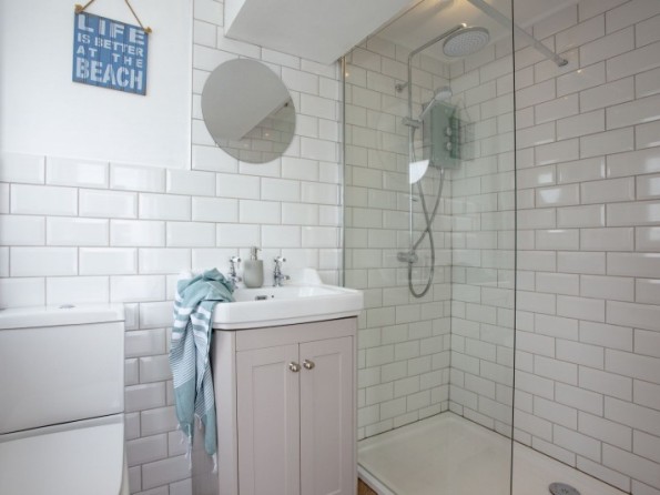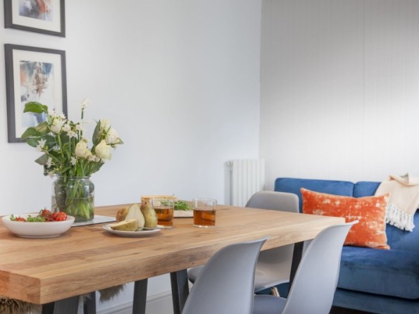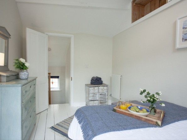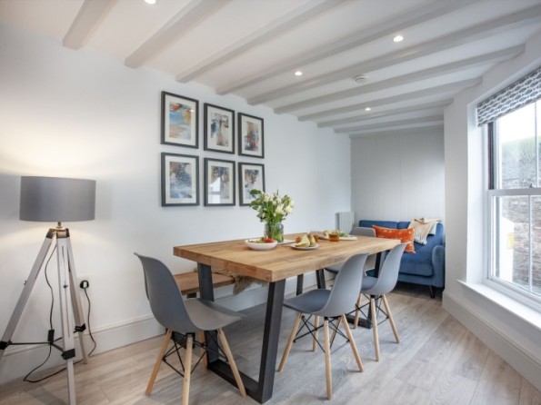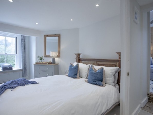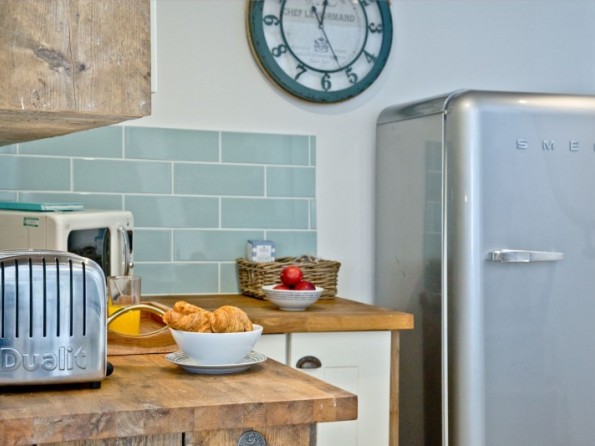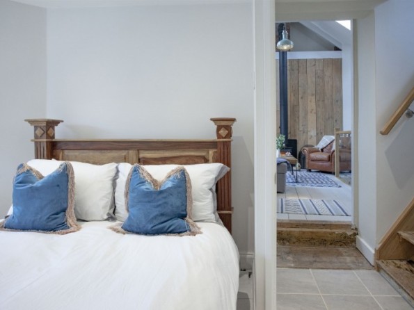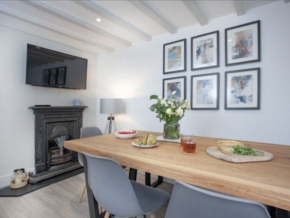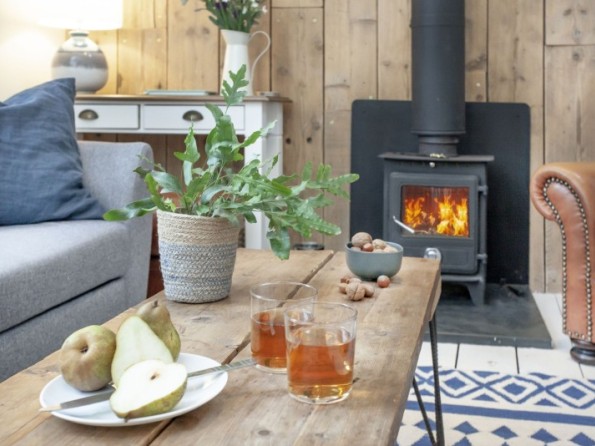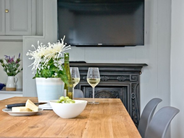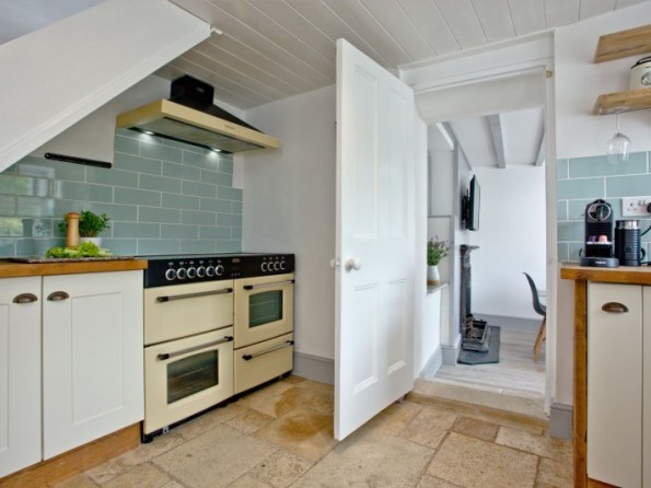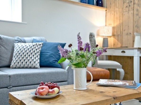 Arranged over the upper two floors of the property are two double bedrooms including a sumptuous master bedroom with king size bed, and the bijou living room complete with its wood burning stove, flat-screen television and a large L-shaped sofa, is the ideal spot for chilling out or enjoying a movie night in.