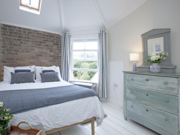 Beautifully styled with a contemporary coastal feel the cottage makes fantastic use of the quirky space within, where furnished nooks create the perfect place to catch up on a good book; and angular windows flood the home with natural light.