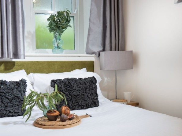 Upstairs are two comfortable bedrooms (a master king and a twin) as well as a family bathroom whirlpool bath and separate shower. To the front of the cottage is a south facing private courtyard garden with table and chairs, a gorgeous spot for reading in the sunshine or for enjoying outdoor dining together.
