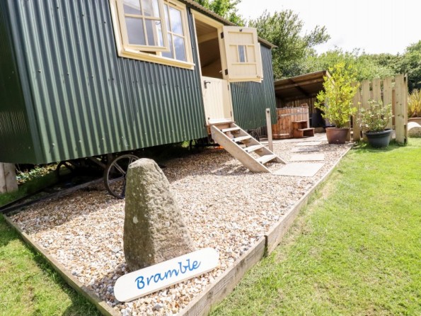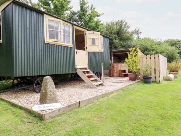 Bramble is a beautifully presented shepherds hut near to the town of Wadebridge in Cornwall. The property sleeps two people in studio accommodation which is made up of a double bed, kitchen and dining area with woodburner as well as a separate shower room. To the outside is outdoor furniture with sitting area and private hot tub and large shared grassed area with access to 410 acres of farmland. Situated in a stunning location, Bramble is a great place to enjoy at any time of the year.