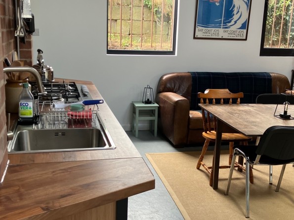 The accommodation can sleep up to six people in two bedrooms. There is one double bedroom, and a second room with two sets of bunk beds. All linen and towels are provided. The central living room as a 5 ring gas hob, charging points for phones and a woodburning stove (plentiful log supply included). The building is well insulated, and there is hot water, and a bathroom with shower and flushing toilet. Please note that there is no mains power - the lights are solar powered. The front opening double doors give you the chance to see incredible sunrises over the sea.