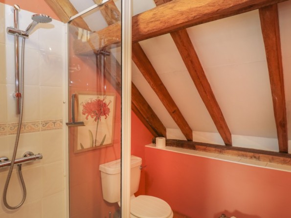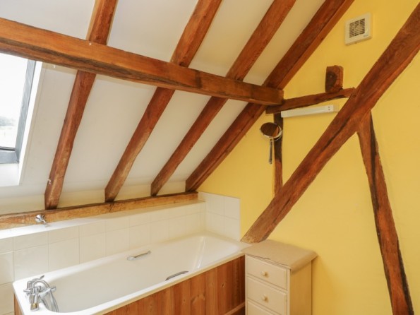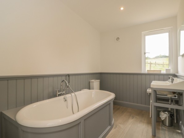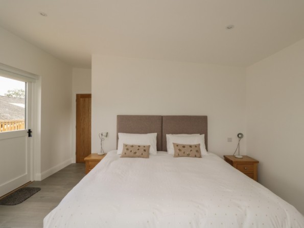 Five bedrooms: 1 x ground-floor super-king-size (zip/link, can be made into a twin) with en-suite bath, basin and WC, 1 x ground-floor king-size double with en-suite shower, basin and WC, 1 x king size double with en suite shower, basin and toilet, 1 x twin, 1 x triple. Galleried landing TV area with with 2 single bed Bathroom with bath, basin and WC. Ground floor shower room with shower, basin and WC. Open-plan kitchen, living and dining area with TV and wood burning stove. Utility room with washing machine and tumble dryer