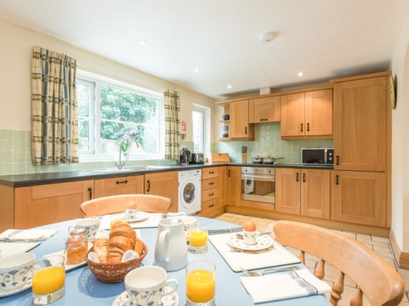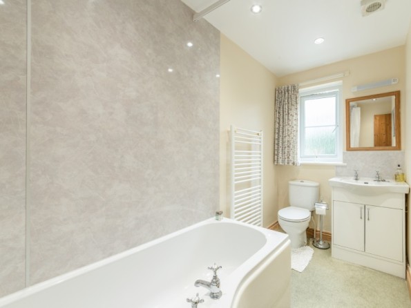 Three bedrooms: 2 x double, 1 x twin. Bathroom with bath, shower over, basin and WC. Shower room with shower, basin and WC. Kitchen with dining area. Spacious sitting room with log burning stove.
