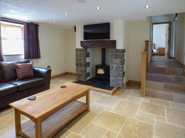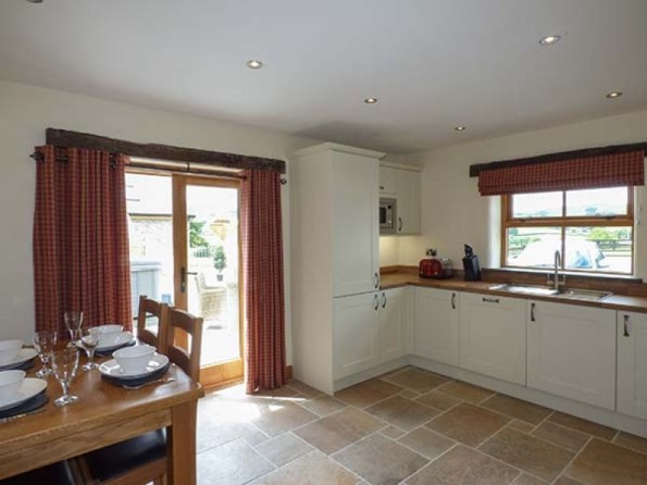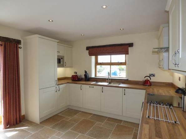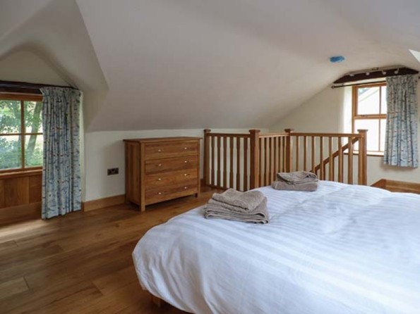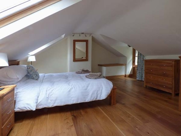 Two bedrooms: 1 x king-size double, 1 x ground floor twin. Bathroom with bath, separate shower, basin and WC. Kitchen with dining area. Sitting room with woodburner. External utility.