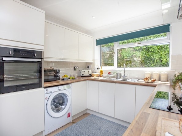 Inside there’s a well-equipped kitchen with plenty of worktop space, so if you fancy rustling up a home cooked creation or two, you’ll have everything you need to do so. When the weather’s bright you’ll be able to sit outside and enjoy afternoon drinks or fresh air dining while watching the sun set, and the apartment’s private garden gives children lots of space to play games or laze in the sunshine.