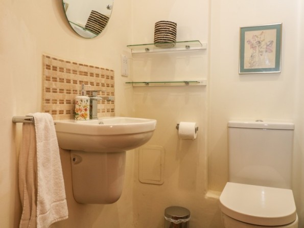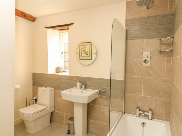 Three bedrooms: 1 x first floor master bedroom with kingsize double, 1 x double bed (or 2 x zip/link single beds), 1 x twin bed. Ground floor shower room with shower, WC and washbasin. First floor bathroom with bath, shower over, WC and washbasin. Kitchen. Living area with woodburning stove. Additional living/dining area.