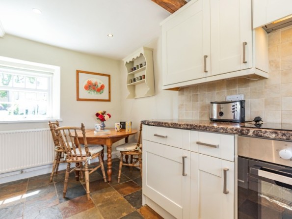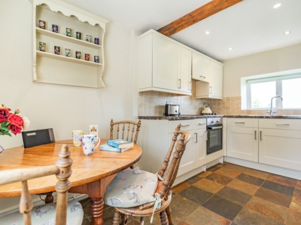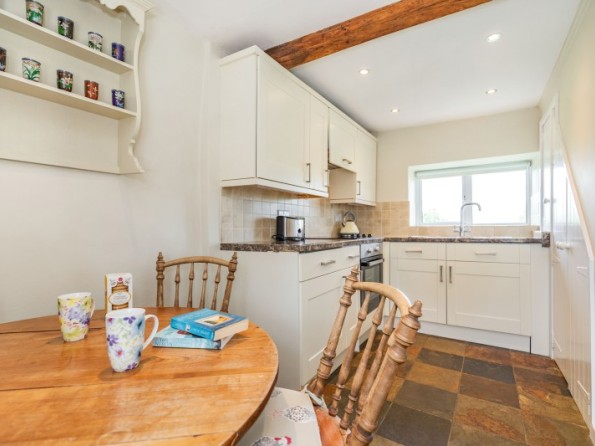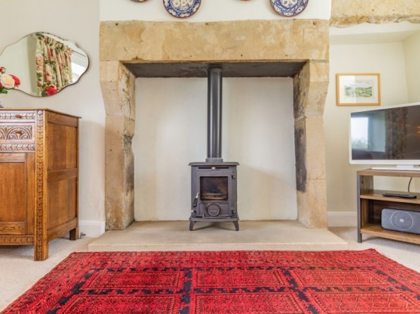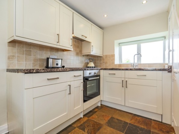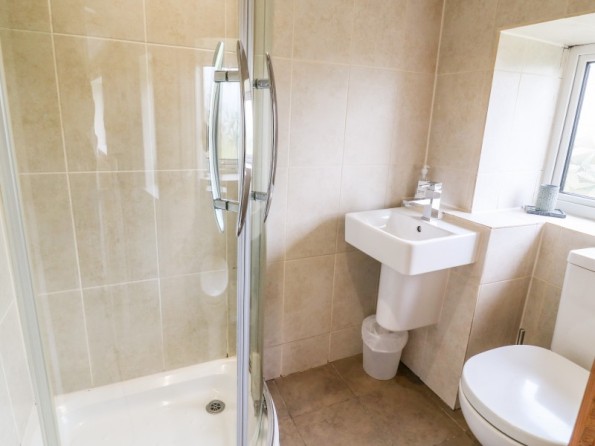 Two bedrooms: 1 x king-size double, 1 x single. Shower room with shower, basin and WC. Kitchen with dining area. Sitting room with woodburning stove.