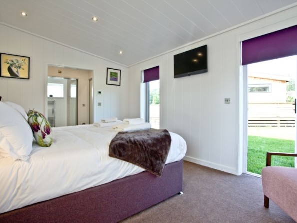Inside your modern lodge you’ll find luxurious touches sprinkled throughout to help make your stay even more special. Enjoy nights in on the comfy corner sofa watching a movie on the wall mounted Bang & Olufsen Smart TV, and you’ll all be heading to the kitchen to cook up a storm on the NEFF appliances. The luxury doesn’t end there, you can take your pick of the two super king size bedrooms, each with walk-in dressing room and en-suites with an inviting rainfall shower.
