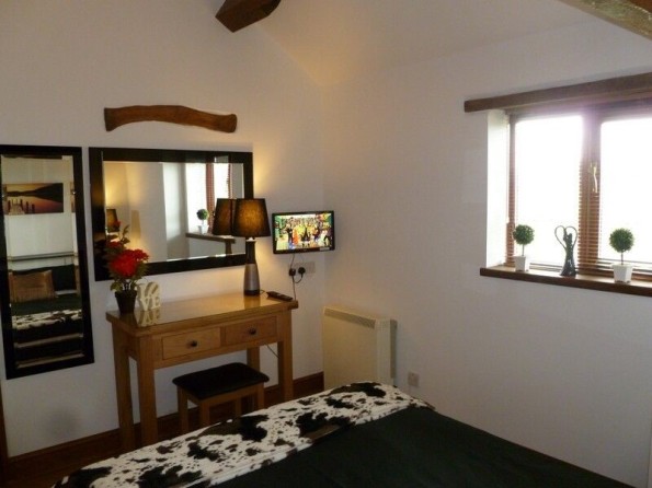 One bedroom: 1 x double with Freeview TV and en-suite shower room basin and WC.