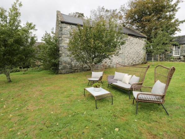 Stunning Grade II listed Jacobian cottage in a peaceful location on the outskirts of Llanfair, Gwynedd. Smart TV. Wifi. Tennis court. Harlech 1.8 miles; Llanaber 7.3 miles; Porthmadog 11.8 miles.
