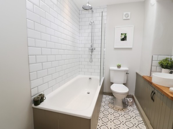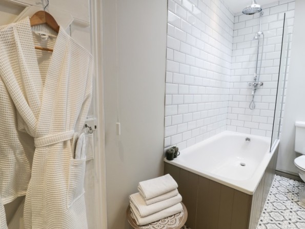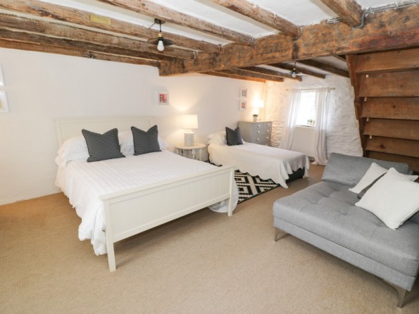 Over two floors. Two bedrooms: 1 x king-size, 1 x double with additional single (can be used as a twin). Bathroom with bath, shower over, basin and WC. Kitchen. Dining room. First-floor sitting room