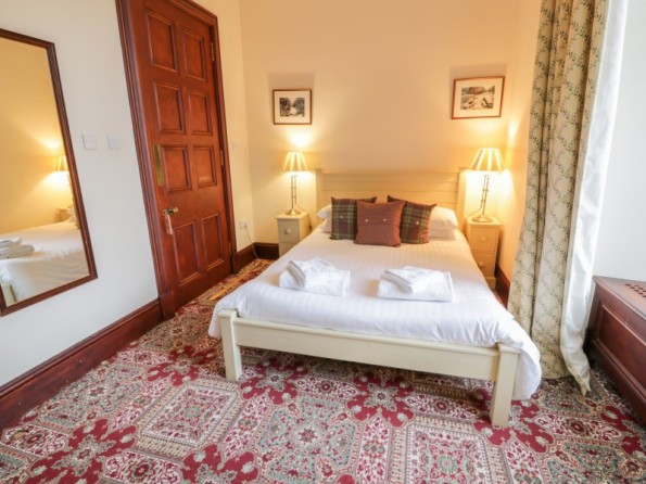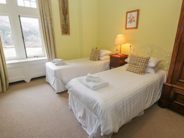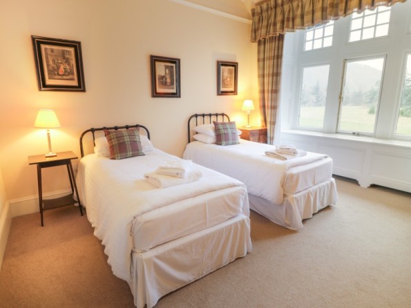 Bynack is a duplex apartment resting in Braemar in Aberdeenshire. Hosting eight bedrooms;1 x ground-floor double with en-suite wet room, basin and WC, located at entrance of apartment 2 x double, 1 x family room with a double and a single, 4 x twin, within apartment along with three bathrooms, a shower room and a cloakroom, this property can sleep up to 17 guests. There is a kitchen/diner and a living/dining room, as well as access to Mar Lodge Estate, while off-road parking is available in the car park. Bynack is a fantastic apartment for a large family gathering in an amazing property.