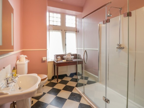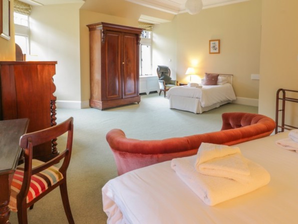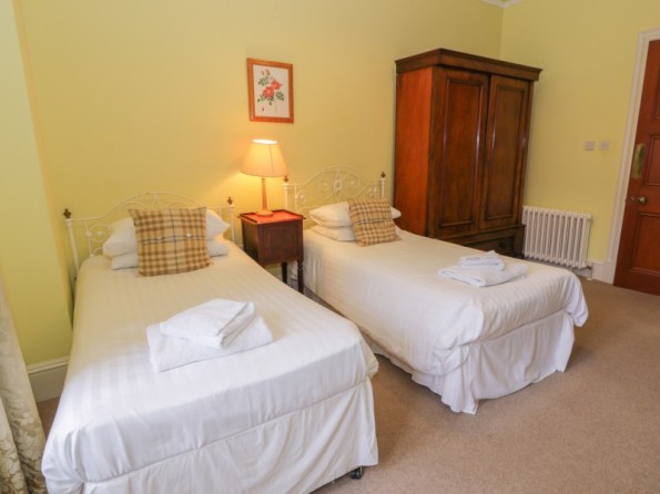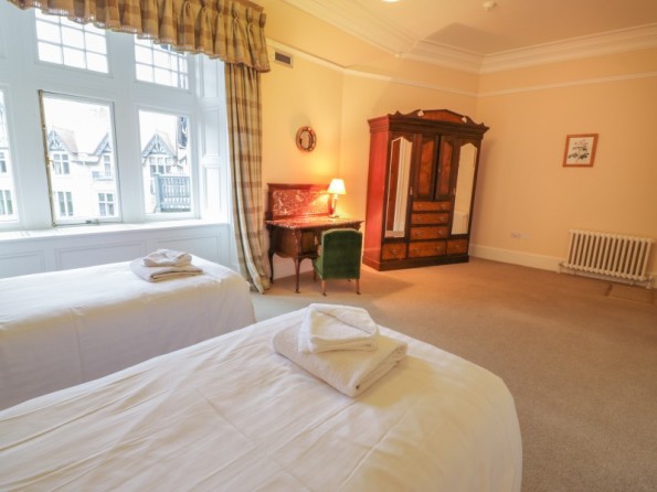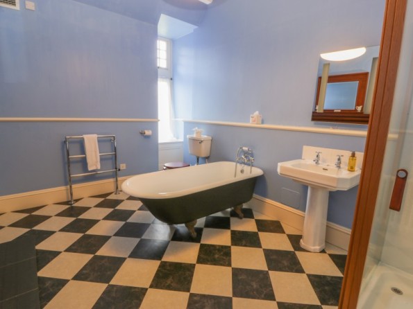 Over two floors. Eight bedrooms: 1 x ground-floor double with en-suite wet room, basin and WC, located at entrance of apartment, 2 x double, 1 x family room with a double and a single, 4 x twin, within apartment. 3 x bathrooms with roll top bath, separate shower, basin and WC. Shower room with walk-in shower, basin and WC. Cloakroom with basin and WC. Kitchen/diner. Living/dining room.