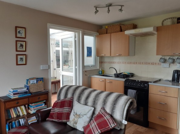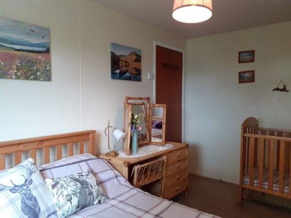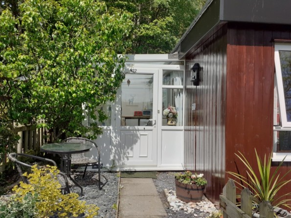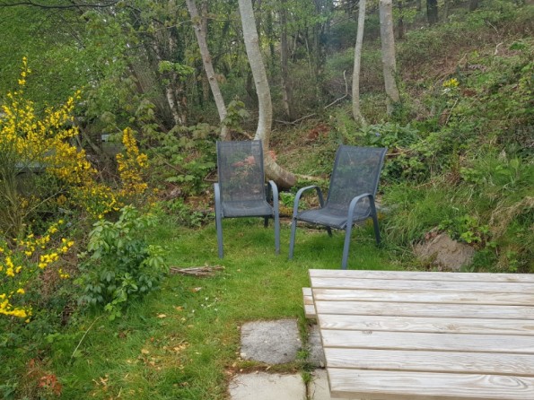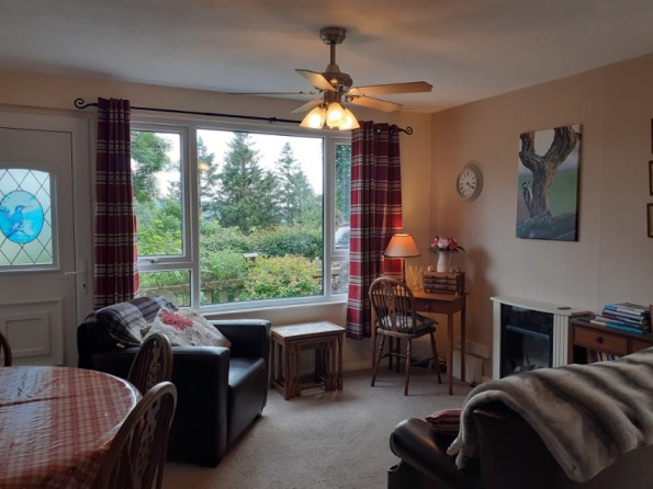 The cabin has two bedrooms, one double (with cot - please bring your own cot bedding) and one twin. There is a folding guest bed with bedding for a 5th person if you need it. There is a bathroom with a walk in shower and washbasin, and a toilet. Towels and hairdryer provided. The kitchen / living room is open plan. The kitchen area is at the rear of the living room and includes an electric cooker, sink, crockery and utensils. The conservatory, which has additional seating, also has a microwave, fridge freezer, toaster and washer dryer. There is a clothes airer, iron and ironing board. The open plan living room has comfortable seating, a dining room, and, a south facing picture window with views through the trees to the Dovey Estuary. The cabin is heated throughout with wall mounted heaters. There is no TV or Wifi, but there’s a children’s toy box and books, games and puzzles for all. There are maps and guidebooks to help you decide where to go and how to get there.
