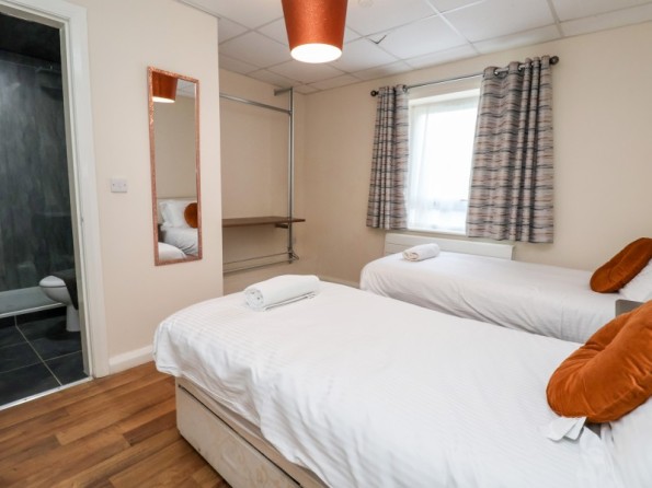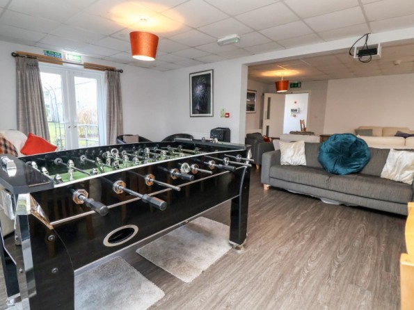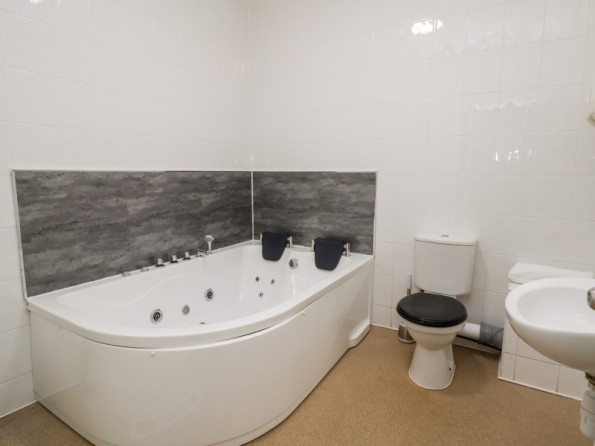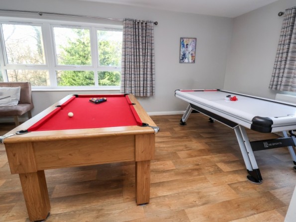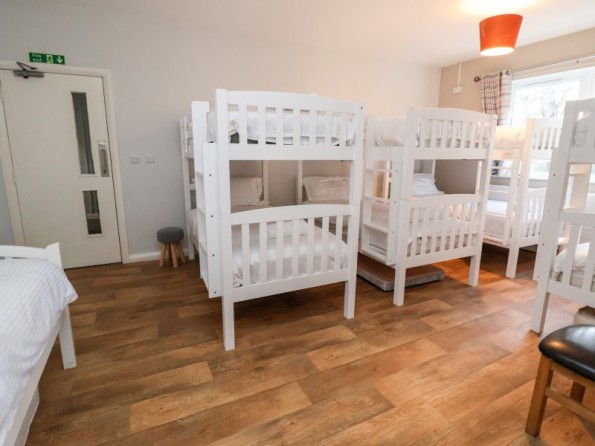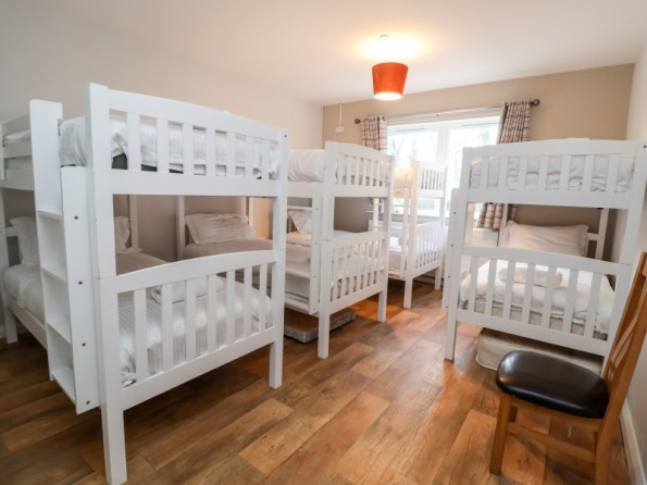 Over two floors. Eleven bedrooms and one dormitory room (zip/link, can be twins upon request). Ground Floor: 5 x super-king size doubles (zip/link) all with en-suite shower, basin, heated towel rail and WC. First Floor: 6 x super-king size doubles (zip/link) all with en-suite shower, basin, heated towel rail and WC, 1 x dormitory room with four adults bunk beds. Bed configuration in relation to floor plan: Ground Floor - Bedroom 1, Double/twin (zip/link beds) Bedroom 2 - Double/twin (zip/link beds), Bedroom 3 - Double/twin (zip/link beds), Bedroom 4 - Double/twin (zip/link beds), Bedroom 5 - Double/twin (zip/link beds), 1st Floor - Bedroom 6 - Bunk room with 4 bunks, Bedroom 7 - Double/twin (zip/link beds), Bedroom 8 - Double/twin (zip/link beds), Bedroom 9 - Double/twin (zip/link beds), Bedroom 10 - Double/twin (zip/link beds), Bedroom 11 - Double/twin (zip/link beds), Bedroom 12 - Double/twin (zip/link beds). 1 x bathroom with double jacuzzi bath, basin & WC, 1 x wet room with shower, basin & WC. Kitchen/dining room. Sitting/dining room. Games room