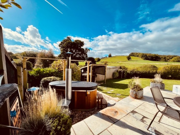 The cottage has a large south facing garden and patio with BBQ and fire pit. There's a private hot tub with wonderful views across the fields. There is parking for two cars. There is a woodland sauna a short walk from the cottage.