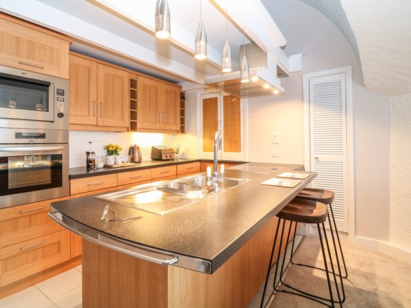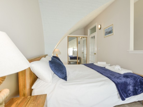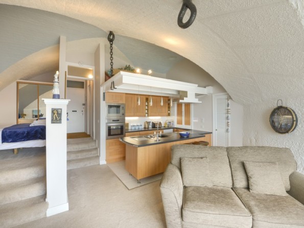Cannon's Folly is a top floor apartment in 19th century Fort Picklecombe, near Kingsand in South Cornwall. It has one double bedroom and a sofa bed in the living area, with stunning modern bathroom. On the same level is the open-plan living area with a seating area, dining area and kitchen, with sliding doors to a balcony with table and chair, and amazing coastal views. Cannon's Folly is a brilliant apartment for a relaxing break by the sea in Cornwall.