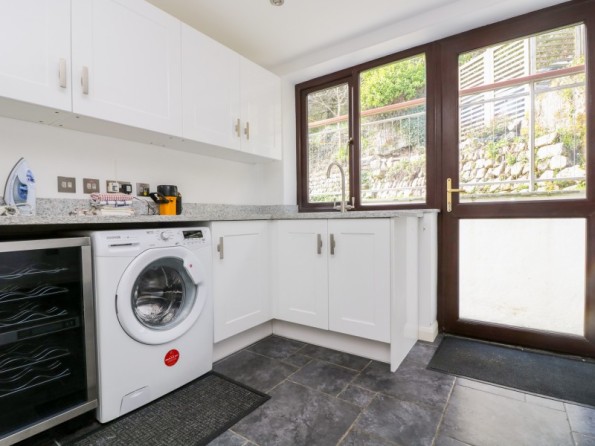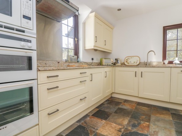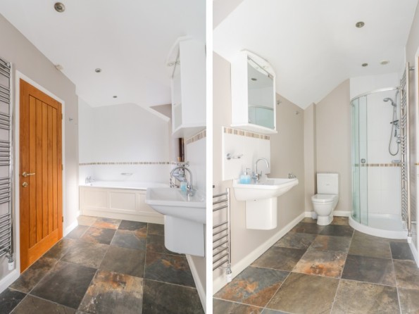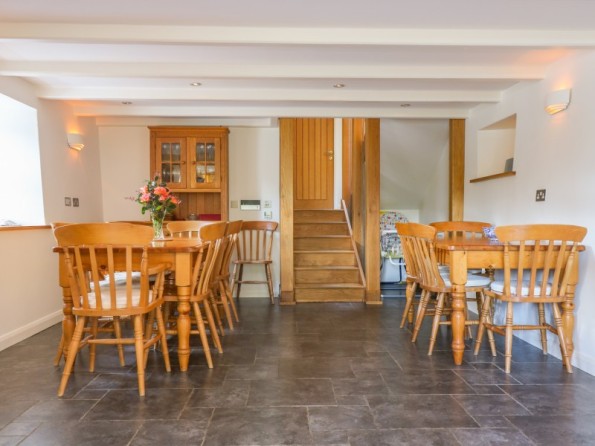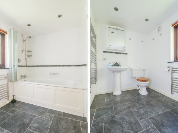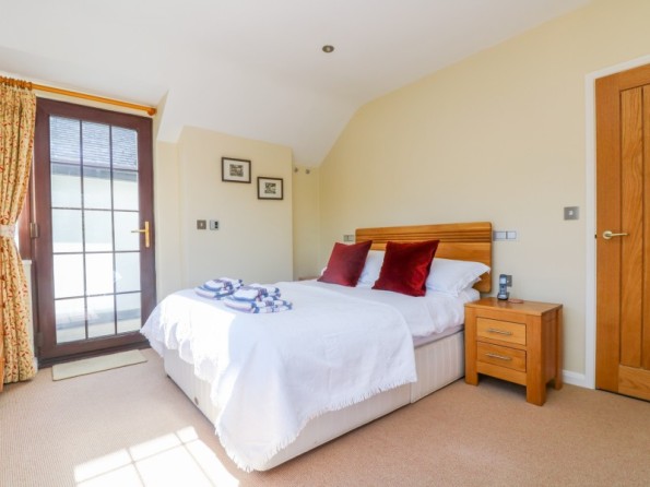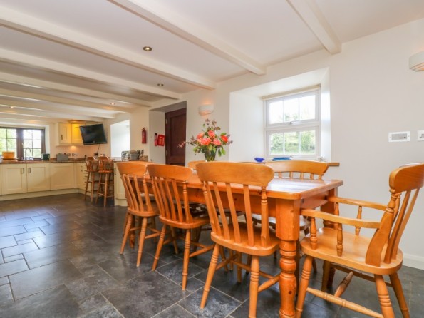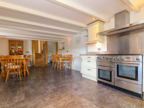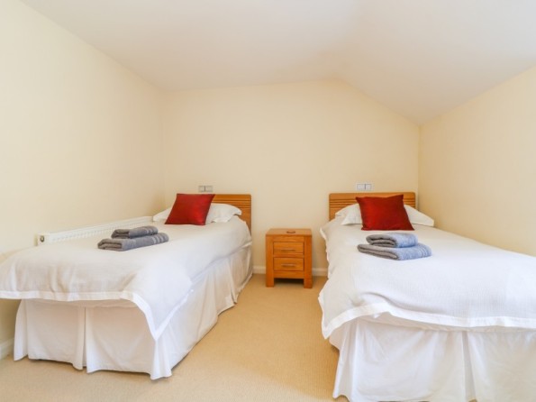 Over three floors and in separate apartment. Six bedrooms: 1 x king size double, 1 x twin (zip/link to super king double on request), 1 x second floor king size double with access to balcony, 1 x second floor twin (zip/link to king size double on request), in the apartment 1 x king size double, 1 x twin. First floor bathroom with bath, power shower over, basin and WC. Second floor Bathroom with bath, separate shower, basin and WC. In the apartment bathroom with bath, shower over, basin and WC. Kitchen with dining area and TV. Sitting room with 40 TV and wood burning stove. Utility room. In the apartment Kitchen. Sitting room with dining area.