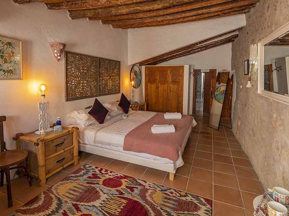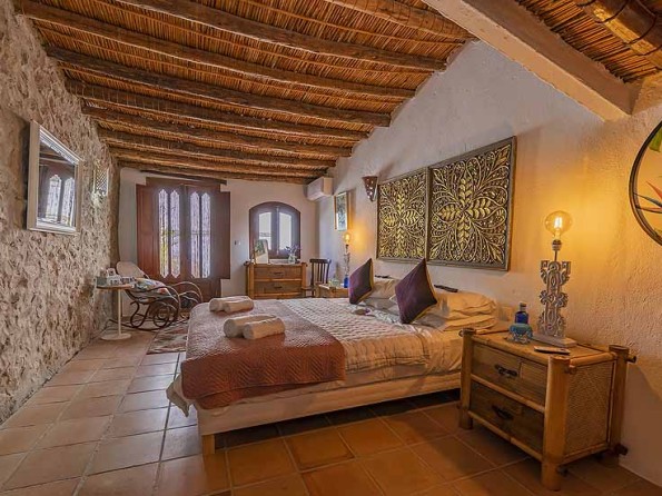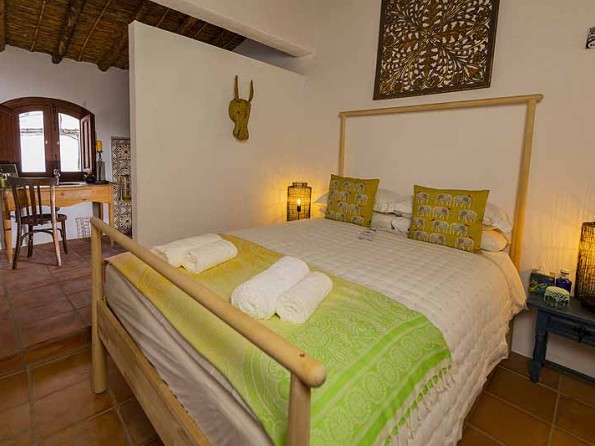 The B&B has two suites, both of which have traditional cãna ceilings and terracotta stone-tiled floors. The Bougainvillea suite has a large double bed, a luxurious en-suite wet room and a lounge with a day bed and armchair. The Bamboo suite has a super king size bed with an en-suite bathroom and a dressing area with a rocking chair. Amenities include tea and coffee making facilities, fluffy towels and handmade candles and soaps. Within the house you will also find a quirky bar/breakfast room where a continental breakfast is served daily.