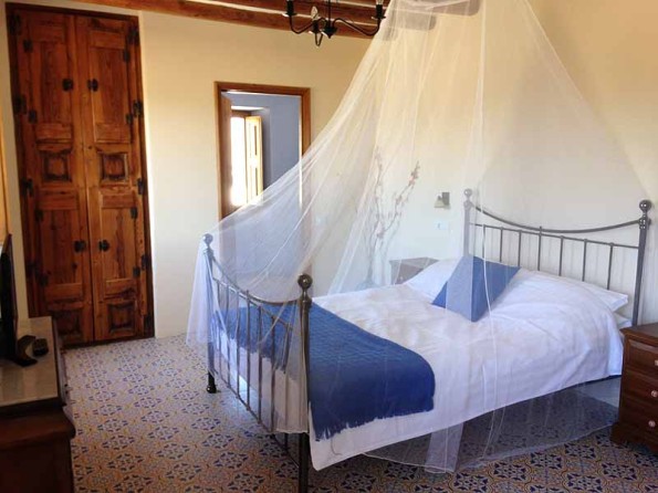 The house has five bedrooms, each of which has an en-suite bathroom, toiletries and a TV - La Iglesia is a double with a carved door and original beams, Flor-de-Lis has antique floor tiles and a balcony and La Cruz is a family room with a rustic style and a roll top bath. In total there are three doubles and two family rooms (which sleep 4). Communal areas include a breakfast room with a traditional fireplace and a reception room with a log burner and a library, and WiFi is included throughout.
