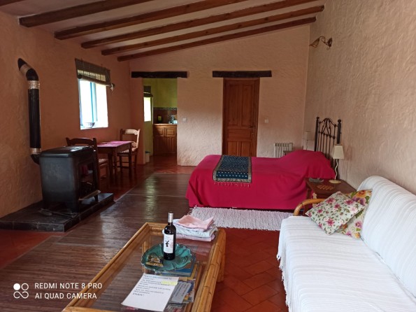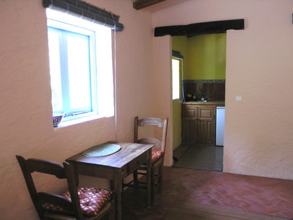 Once a farm cottage, Casa Luc has been beautifully restored and has retained many original features including a stained glass window and a beamed ceiling. It’s been designed as a stylish and romantic retreat for couples. The living / sleeping suite is open plan, with a king size double bed and handsome furnishings. There’s a well equipped, compact kitchen and a vibrantly coloured bathroom with handpainted Andalucian tiles. The cottage has wifi throughout, TV / Video, a music centre, and basic equipment such as iron, ironing board and a barbecue. Laundry facilities are available.
