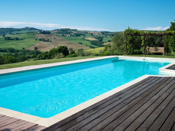 Each apartment has its own private garden or terrazza with a table and chairs for outdoor dining. The 15m heated pool is boarded by a large wooden deck and a grassed area, together with a pergola covered in grape vines, and there are lots of sun loungers so you can relax and take in the scenery. In the garden you will find a large vegetable patch, a herb garden and an orchard, all pf which you are free to help yourself from.