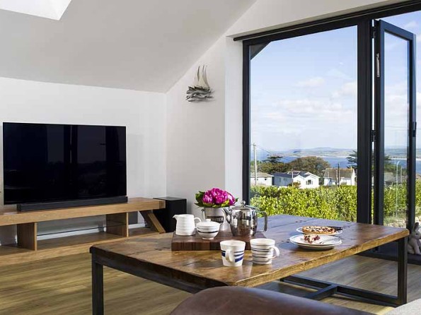 Set in an elevated position with lovely sea views, this stunning reverse-level detached home overlooking Carbis Bay is a stylish and luxurious holiday rental in Cornwall from which to explore the endless delights of the coastline.