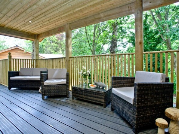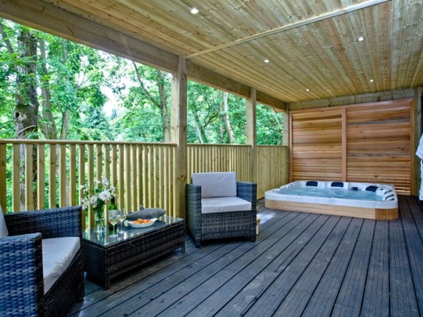 - Private balcony to the front of the lodge with table, chairs and hot tub