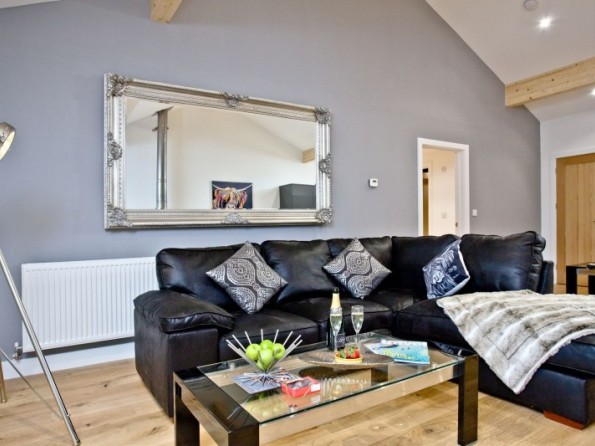 - Large leather sofa, coffee table, log burning stove, Smart TV with DVD player and IPod docking station