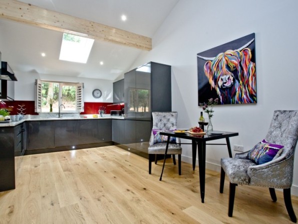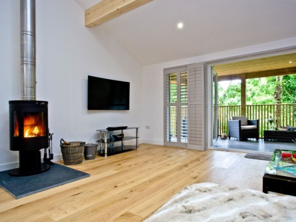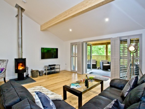 Step inside, and the log burner adds a romantic touch to those quiet evenings in. Pop your favourite playlist on via the ipod docking station and cosy up on that chic leather sofa. The open plan design of the kitchen and dining space means you needn’t be apart for a moment, and the doors from the living space to the decking mean you can let that gentle breeze drift in on a summer’s day.