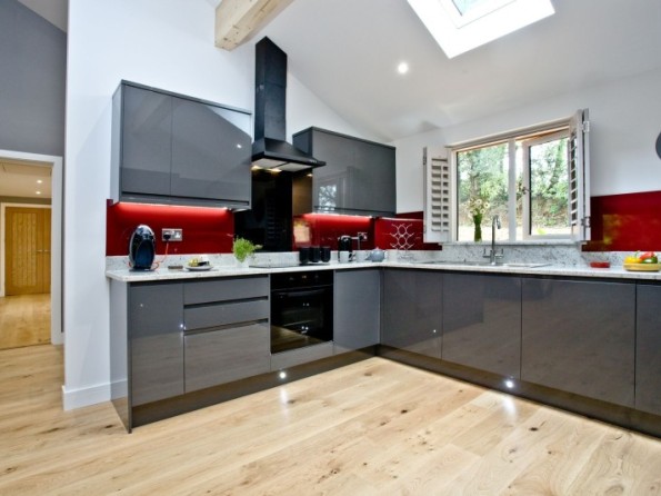 - High gloss units, electric oven, large built-in fridge freezer, dishwasher, washer dryer, larder units and microwave