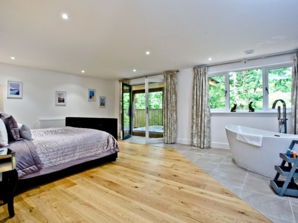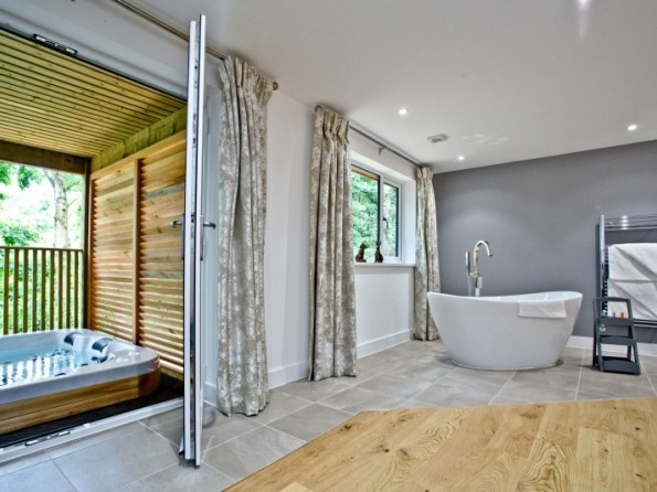 - Super king size bed, dressing room and access to the balcony with private hot tub through patio doors