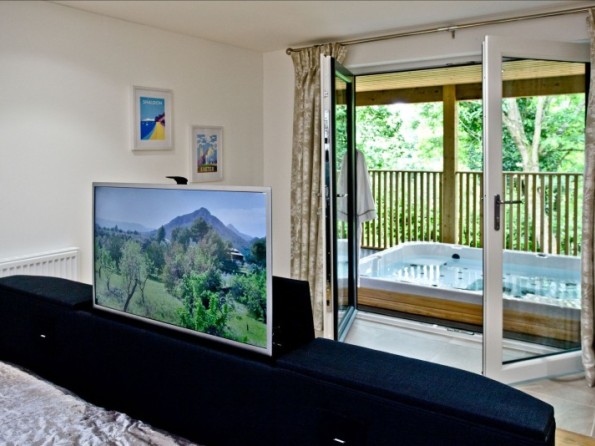 We reckon you’ll while away many an hour in that hot tub under the stars. Just imagine sipping on a glass of bubbly while you enjoy the peace and quiet of the resort’s woodland setting. The balcony area means you can dine outside in style while you unwind after a lazy day, perfect for those romantic meals while the sun sets behind the lake.
