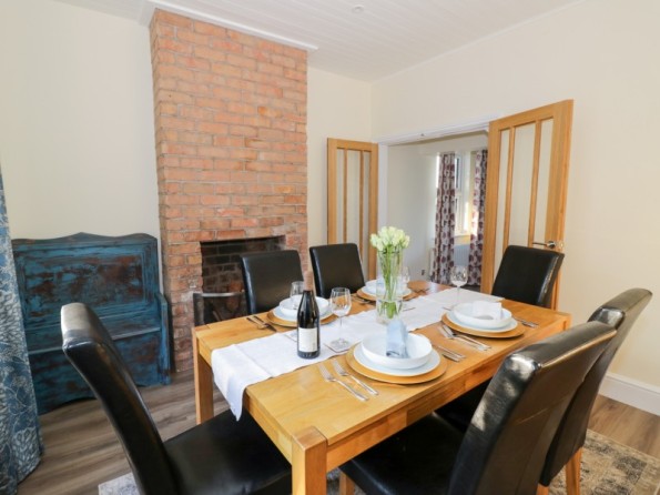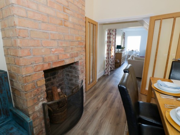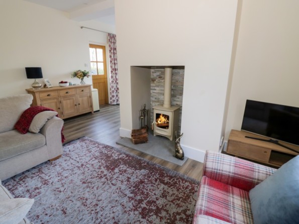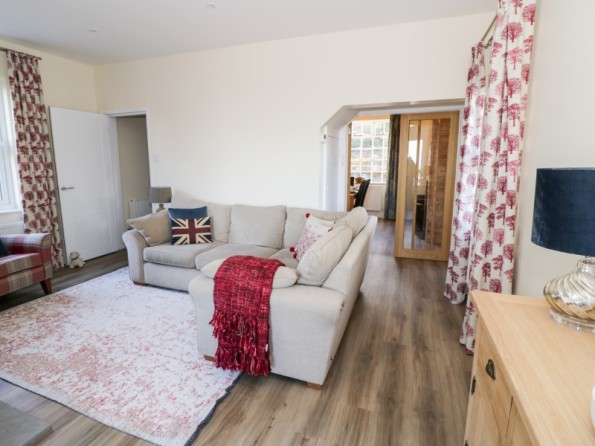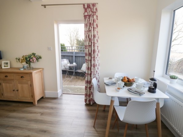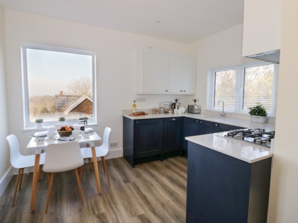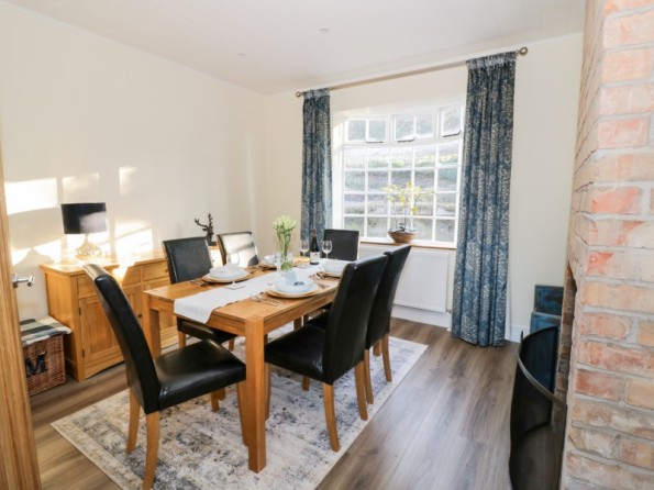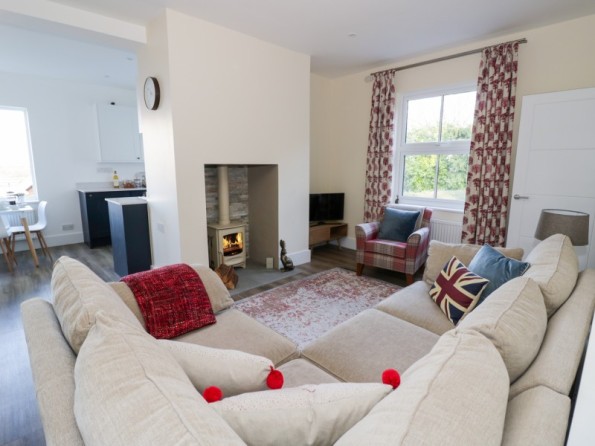 Open-plan living room with wood-burner, blankets and throws. Open-plan kitchen with seated dining area. Complimentary kitchen/cleaning pack. Separate dining room.