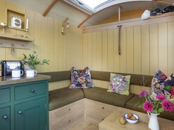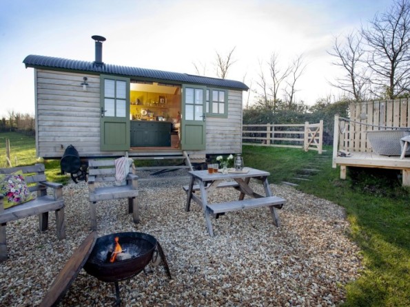 Spend your days stretched out on a blanket with a picnic and a good book in the nearby meadow or meandering one of the many surrounding paths that are strewn throughout the landscape. An Area of Outstanding Natural Beauty there are woodlands and valleys to explore as well as the rugged beach at Kilve (just 12 minutes’ walk away), and the huts even offer fossil finding and birdwatching kits for you to make the most of the experience. Evenings can be whiled away with a G&T around the outdoor fire bowl or curled up inside with a home cooked dinner and a game of cards while the log fire roars away in the corner.