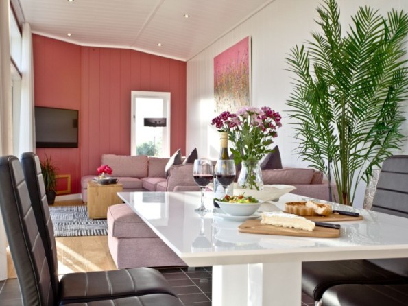 As the name suggests, beautiful flashes of pink make this lodge truly special. Whether you’re relaxing on the sumptuous sofa or preparing a meal in the beautiful kitchen, you’ll be taking in the views of the surrounding countryside from the floor to ceiling windows. Pull back the large patio doors and let the fresh air fill the lodge, before you step outside onto our private decking to enjoy breakfast in the morning sun. And what better way to start the say than a dip in your private hot tub. The two sumptuous bedrooms offer a tranquil pace to retreat to after a day exploring, and with a walk-in dressing room and en suite shower rooms with Villeroy and Boch suite with a refreshing rainfall shower.