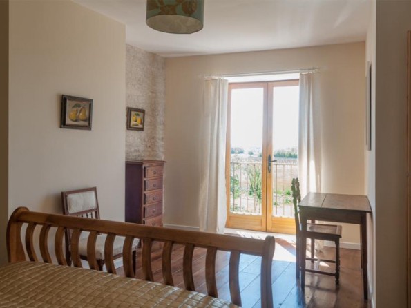 There are three accommodation options on site - Chez Aristide is the largest of the three at 105m2 and is in the former pilgrim’s lodgings. There are three bedrooms and two bathrooms. The master bedroom is king size and has a juliet balcony with south facing views. The second bedroom can be either a king or a twin and overlooks the courtyard. The children’s room has a seaside theme with bunks and a cot. There is a family bathroom upstairs and a shower room downstairs.There’s a well equipped open plan kitchen, an antique refectory table with bench seating, two large sofas, flat screen HD TV with DVD and iPod docking, freesat TV and Wifi. There are two other houses on site. La Maison Cachee is a traditional cottage, formerly the kitchen of the priory refectory with a massive stone fireplace dating to 1786 and is tucked away next to the main house. This cottage can accommodate two adults and two children in a family suite, (formerly the grain store). Chez Coco is a stylish and quirky house on the south side of the Courtyard in the pilgrims lodgings, which sleeps up to four and a baby in two ensuite bedrooms, this cottage has a massive 3 metre high window. In the summer the thick limestone walls keep the buildings’ interiors cool, whilst in winter they retain the heat from the wood-burning stoves to keep you cosy.
