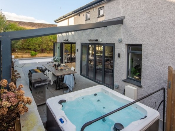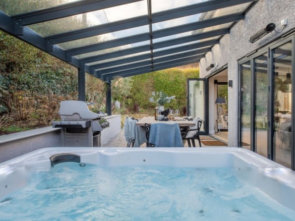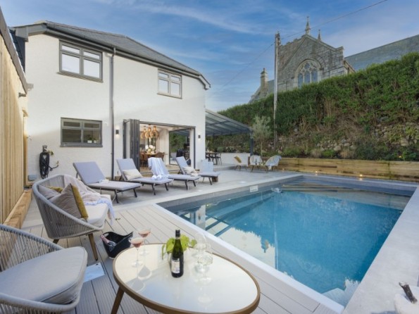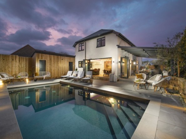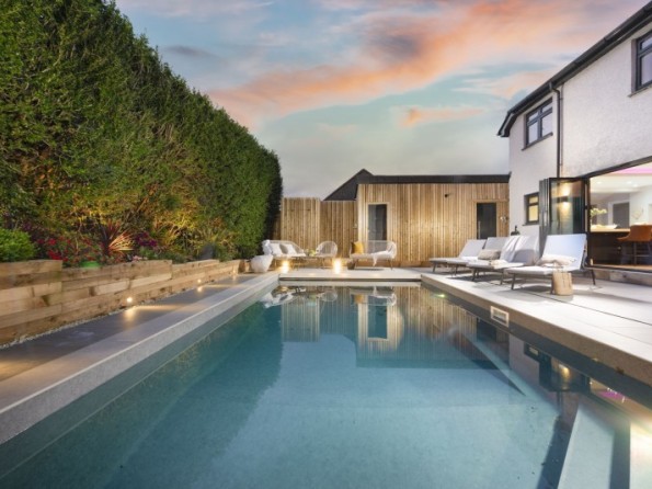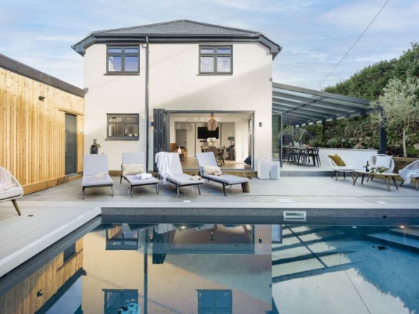The living spaces within the home are cleverly laid out and feature a large open plan kitchen and dining room which spills out to the alfresco entertainment area and pool terrace via two sets of bifold doors. Perfect for summer days, guests can soak up the sun while lounging around the pool, or fire up the barbecue for fresh air suppers that can be enjoyed either outside or in. Two sitting rooms (both with entertainment systems) mean that parents get to relax and unwind with grown-up conversation while children watch their own movies or TV shows, and four stunning bedrooms (two of which are en-suite) offer exquisite comfort and well-thought-out versatility to suit both couples and family groups.