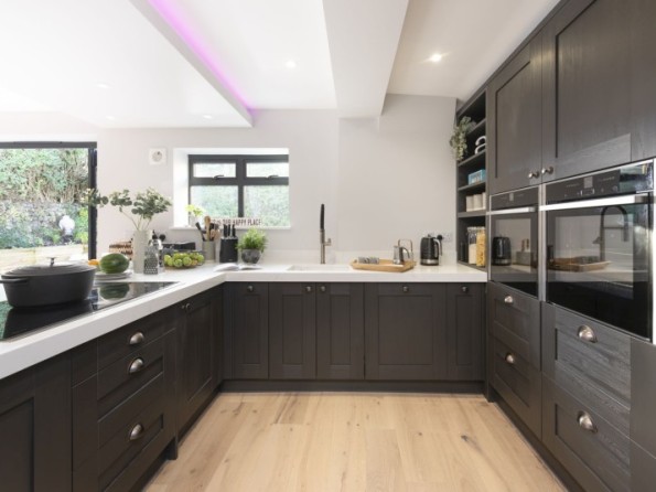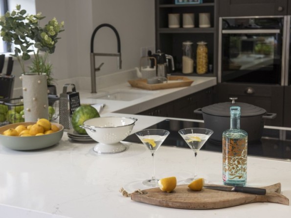 Beautifully designed with chunky stone worktops and plenty of storage space, the kitchen is open plan with the dining room and together with its breakfast bar, stools and under-counter wine fridge, forms a brilliant space for cooking and socialising in. The range of appliances include side by side fan-assisted electric ovens and an induction hob as well as a fridge, freezer, dishwasher, washing machine and microwave. The range of small appliances includes a kettle, four-slice toaster, blender and cafetiere. A good selection of cookware, glassware, utensils and crockery are provided.