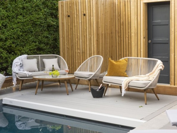 A wonderfully laid out pool terrace wraps around the heated swimming pool and is furnished with four sun loungers and two outdoor living suites as well as a timber-clad outbuilding that houses a cloakroom and WC. An outdoor shower is ideal for de-sanding under after days spent down on the beach, and a large established hedge provides the area with privacy with raised beds that feature planted mature shrubs and flowering plants gives a lovely, lush appearance to the space.