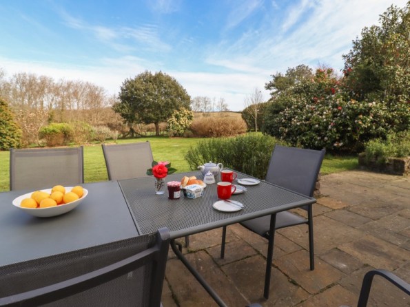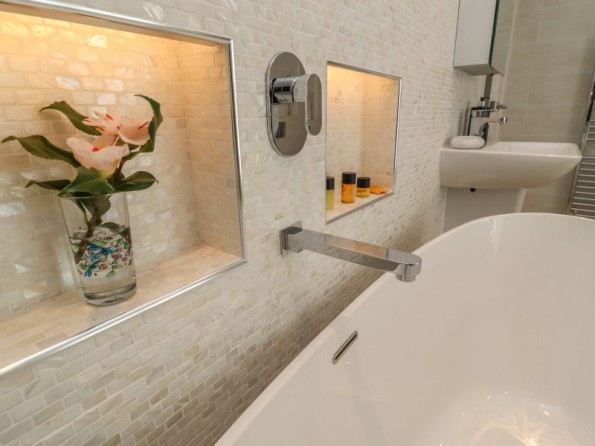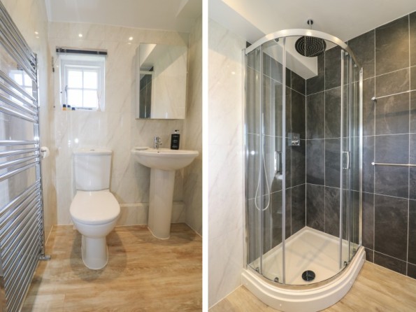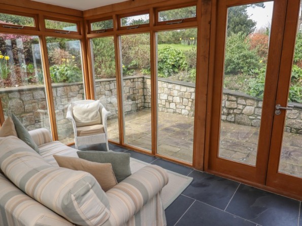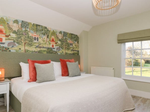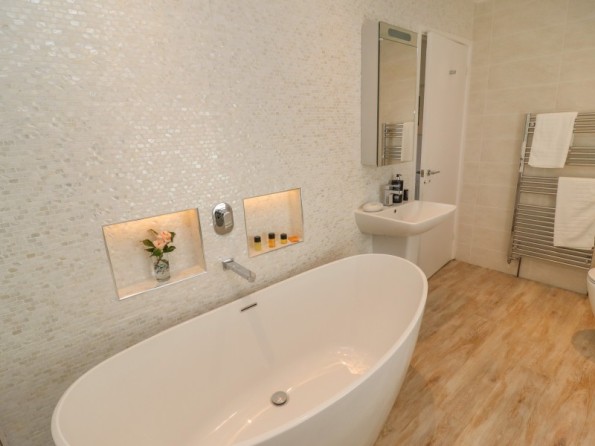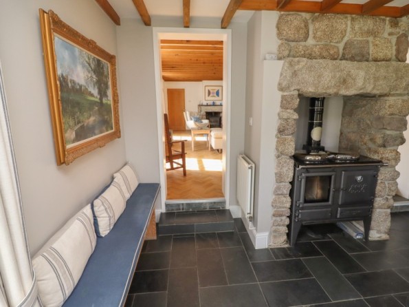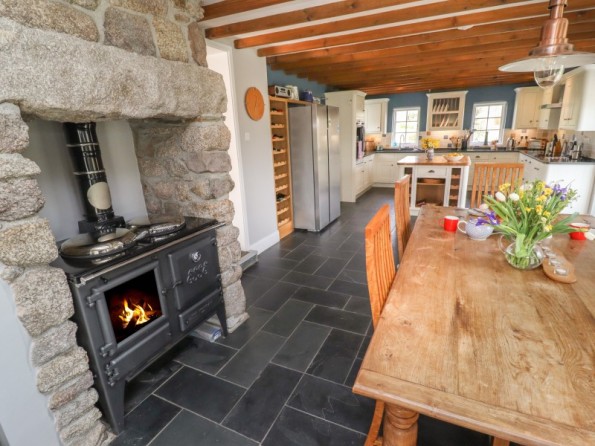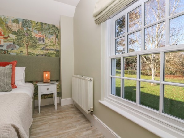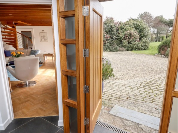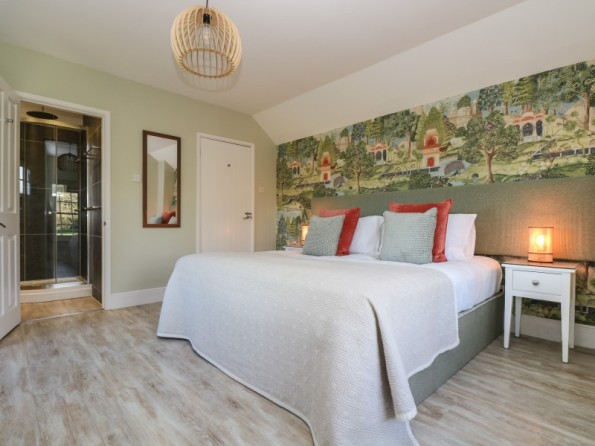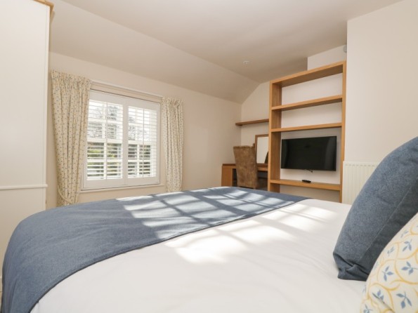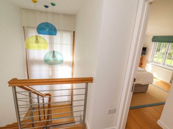 Four bedrooms: 1 x super-king size double (can be twin on request) with en-suite shower-room, 1 x king size double with TV, and en-suite shower room, 1 x super king size double with TV, 1 x king-size. Bathroom with bath, shower cubicle, basin and WC. Sitting room with woodburning stove and smart TV. Kitchen with dining area. Conservatory. Utility Room. Cloakroom