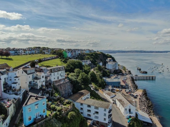 Perched on a detached plot with far reaching views over the harbour and bay, Cliff Cottage with its eye-catching aquamarine exterior and triangular design, is unlike any other home in Brixham.