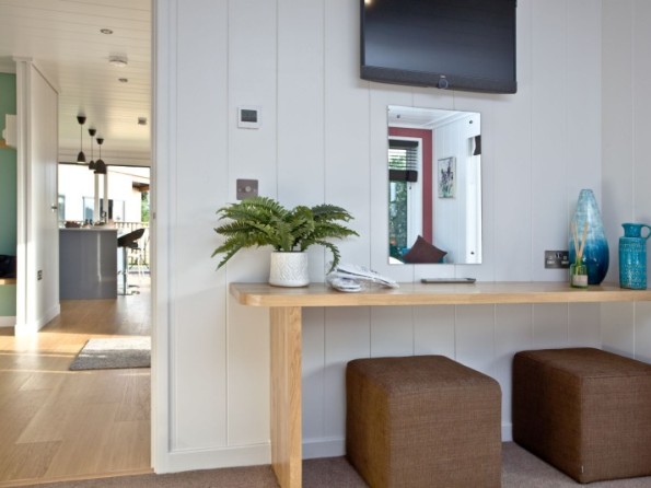 Your architect designed eco-lodge will make your next break truly special, from the comfy sofa perched in front of the wall mounted Bang and Olufsen TV to the modern kitchen with its gloss units and Neff appliances.