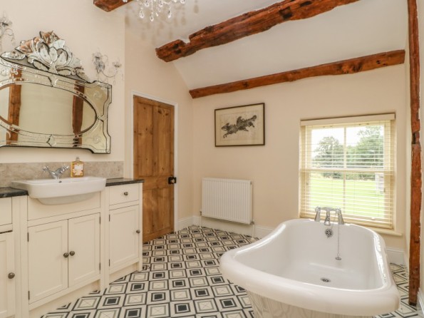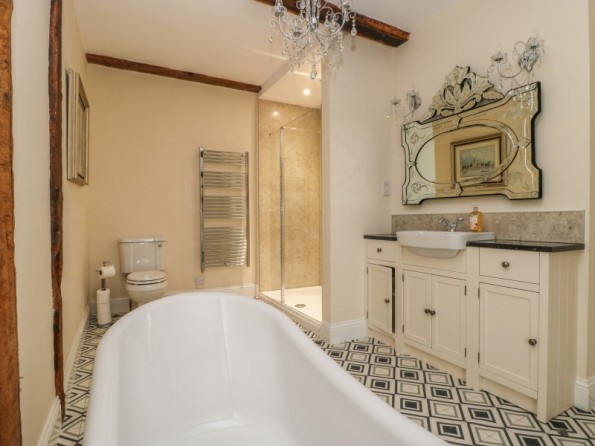 Six bedrooms: 1 x ground-floor super-king-size (zip/link) with TV and en-suite wet room with shower, basin and WC, 1 x super-king-size (zip/link) with TV and en-suite shower, basin and WC, 2 x king-size with TVs and en-suite shower, basin and WC, 2 x king-size with TVs and en-suite bath, freestanding bath, walk-in shower, basin and WC. Kitchen/diner with TV. Utility. Sitting room. Snug.