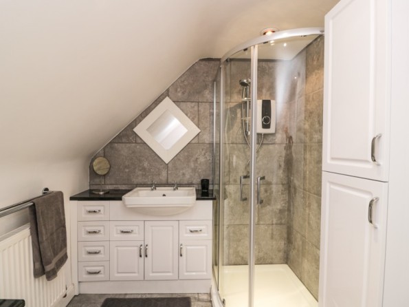 Three bedrooms: 1 x ground floor king-size, 1 x first floor king-size, 1 x first floor twin. First floor shower room with shower, basin and WC. Ground floor shower room with shower, basin and WC. Kitchen/diner with breakfast bar.