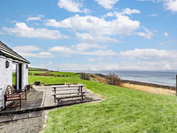 Drive through pretty villages along winding country roads to reach this peaceful spot next to the sea. Secluded among green fields, and wrapped in a private grassy garden, this characterful cottage promises an unforgettable holiday for the whole family. Visit the tiny fishing harbour at Blackwaterfoot (1 mile) and pick up some freshly baked bread from the bakery, or hire a bike here to explore further afield. 11 miles away, Brodick Castle promises a fun day out. There are further shops and facilities here too. Behind the whitewashed walls, light and airy rooms feature exposed stone walls, wooden furnishings and homespun touches. There is a well equipped kitchen/breakfast room on the ground floor, as well as a dining room that comfortably seats eight. Gather in the lounge for tea and crumpets by the wood burner after blustery country walks, or pass around the aperitifs in the large sunroom and watch spectacular sunsets over the sea with the patio doors flung open. There is a second sunroom/porch on the ground floor, as well as a utility room, comfortable double bedroom and shower room with a large walk in shower. Climb the staircase to the first floor, where you'll find three more charming bedrooms, each with its own vanity unit and washbasin. There is a king size room, a twin and a welcoming family room with two single beds and two bunks, sleeping four, as well as a family bathroom up here. Also upstairs is a snug with a TV, perfect for children to have their own space. Make use of the enclosed garden that surrounds the house by lighting the BBQ and sizzling up an al fresco feast while the children run around on the grass. After you've eaten, sip sundowners on the patio and soak up the tranquillity of this undisturbed area. A great variety of species call it home, including otters, raptors, seals, sea birds, and the rare white pheasant that you may be lucky enough to catch a glimpse of. If you don't feel like venturing far, watch various birds flit to and from the bird feeding station from the comfort of the sunroom, morning coffee in hand. There is an enclosed dog kennel outside too, if required.