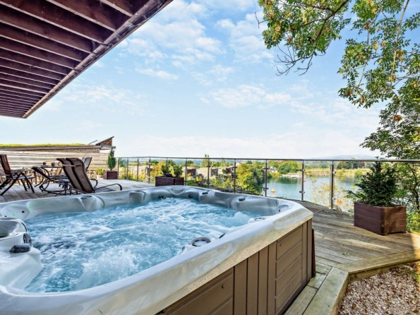 The wonderful lakeside location is perfect for water lovers as this quarry boasts the UK's premier scuba diving centre and PADI dive school, so you can safely enjoy the water. The lodge itself enjoys stunning sunsets and views of the Yorkshire Dales and the Lake District. Roam the local trails by foot or by bike, or venture 10 miles into the Arnside and Silverdale Area of Outstanding Natural Beauty to go wildlife spotting. Lakeland Wildlife Oasis, Leighton Hall Estate and Jenny Brown's Point are all less than 7 miles, while the Lake District, Yorkshire Dales and Forest of Bowland are all within a 20 mile drive. Enter this lakeside lodge and feel welcomed by the rustic charm of this cosy holiday let. A mix of farmhouse style furnishings and contemporary touches create a relaxed atmosphere. On the ground floor you ll find the delightful open plan lounge/kitchen/diner, where you can socialise and catch up on favourite TV shows. The kitchen area has an electric oven and gas hob, fridge/freezer, dishwasher and balcony access, and there s also a washing machine and tumble dryer in the utility room. Take your pick from three tranquil bedrooms. There is one super king size zip and link bed (which can be made into a twin on request) set on the ground floor. There s a ground floor shower room too. Up on the first floor, there s a four poster king size room with an en suite bathroom, and a super king size room (which can be made into a twin on request) with a shower room. Both with their own balcony overlooking the quarry lake. Sit out on the balcony to dine with the scenic water and mountain panorama before you. There is also a wonderful private hot tub that you can request to use for a small cost upon booking this retreat. To conserve energy, the hot tub will only be available if pre arranged. There is off road parking.