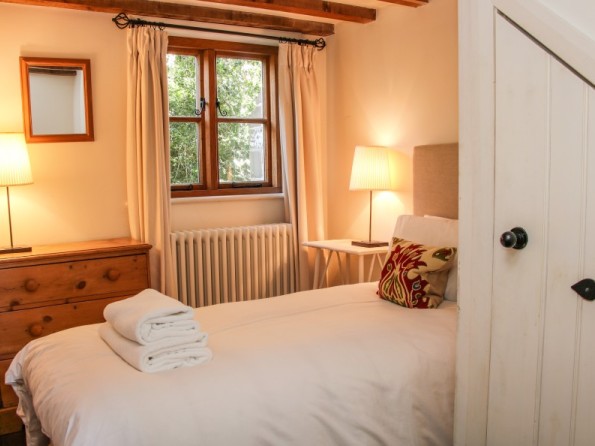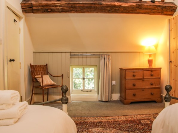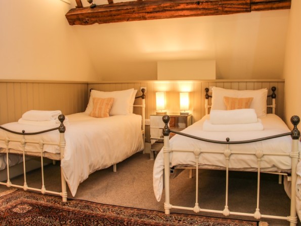 Three bedrooms: 1 x king-size double with en-suite shower, basin, WC and walk-in wardrobe, 1 x first floor twin. ,1 x ground floor single. First floor bathroom with bath, basin and WC. Kitchen with dining area. Galleried sitting room with woodburner.
